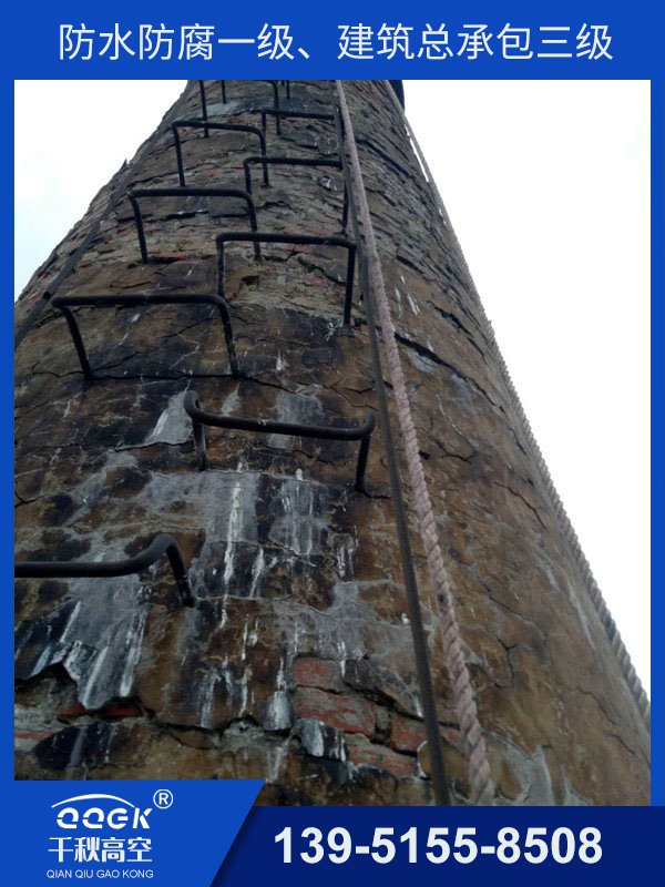 “江蘇千秋高空工程有限公司(原公司江蘇省千秋高空建修防腐有限公司) ”是從事(國內(nèi).國外)240米以下各種(磚、水泥、砼、鋼結(jié)構(gòu))煙囪的新建滑模、防腐、維修、拆除、加固、脫硫、美化、加高、傾斜校正、更換內(nèi)襯、安裝平臺、安裝避雷針、筒型儲存庫清庫等工程;并承接鋼結(jié)構(gòu)、水塔、冷卻塔、涼水塔、造粒塔、鍋爐鋼架、鋼梁屋架、管道、行車、儲罐、變電構(gòu)架、廠房網(wǎng)架、龍門吊等新建、防腐、維修、美化等高空作業(yè)系列工程。施工全部采用“無腳手架、不停產(chǎn)施工、高空懸掛作業(yè)”等技術(shù)。經(jīng)過二十多年的艱苦創(chuàng)業(yè),現(xiàn)已發(fā)展成為一支領(lǐng)導(dǎo)班子齊全、技術(shù)力量雄厚、施工隊伍龐大、企業(yè)資源豐厚的現(xiàn)代高空環(huán)保專業(yè)隊伍,員工全部持有《中華人民共和國特種行業(yè)技術(shù)操作證》上崗。
