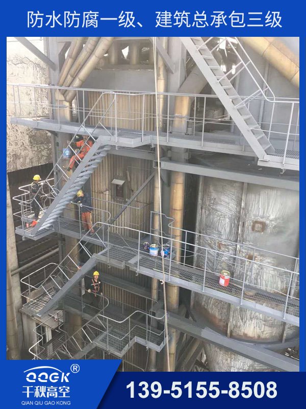 “江蘇千秋高空工程有限公司(原公司江蘇省千秋高空建修防腐有限公司) ”是從事(國內(nèi).國外)240米以下各種(磚、水泥、砼、鋼結(jié)構(gòu))煙囪的新建滑模、防腐、維修、拆除、加固、脫硫、美化、加高、傾斜校正、更換內(nèi)襯、安裝平臺、安裝避雷針、筒型儲存庫清庫等工程;并承接鋼結(jié)構(gòu)、水塔、冷卻塔、涼水塔、造粒塔、鍋爐鋼架、鋼梁屋架、管道、行車、儲罐、變電構(gòu)架、廠房網(wǎng)架、龍門吊等新建、防腐、維修、美化等高空作業(yè)系列工程。施工全部采用“無腳手架、不停產(chǎn)施工、高空懸掛作業(yè)”等技術(shù)。經(jīng)過二十多年的艱苦創(chuàng)業(yè),現(xiàn)已發(fā)展成為一支領(lǐng)導(dǎo)班子齊全、技術(shù)力量雄厚、施工隊伍龐大、企業(yè)資源豐厚的現(xiàn)代高空環(huán)保專業(yè)隊伍,員工全部持有《中華人民共和國特種行業(yè)技術(shù)操作證》上崗。