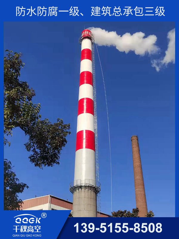 “江蘇千秋高空工程有限公司(原公司江蘇省千秋高空建修防腐有限公司) ”是從事(國內.國外)240米以下各種(磚、水泥、砼、鋼結構)煙囪的新建滑模、防腐、維修、拆除、加固、脫硫、美化、加高、傾斜校正、更換內襯、安裝平臺、安裝避雷針、筒型儲存庫清庫等工程;并承接鋼結構、水塔、冷卻塔、涼水塔、造粒塔、鍋爐鋼架、鋼梁屋架、管道、行車、儲罐、變電構架、廠房網(wǎng)架、龍門吊等新建、防腐、維修、美化等高空作業(yè)系列工程。施工全部采用“無腳手架、不停產施工、高空懸掛作業(yè)”等技術。經過二十多年的艱苦創(chuàng)業(yè),現(xiàn)已發(fā)展成為一支領導班子齊全、技術力量雄厚、施工隊伍龐大、企業(yè)資源豐厚的現(xiàn)代高空環(huán)保專業(yè)隊伍,員工全部持有《中華人民共和國特種行業(yè)技術操作證》上崗。