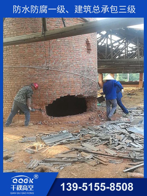 “江蘇千秋高空工程有限公司(原公司江蘇省千秋高空建修防腐有限公司) ”是從事(國內(nèi).國外)240米以下各種(磚、水泥、砼、鋼結(jié)構(gòu))煙囪的新建滑模、防腐、維修、拆除、加固、脫硫、美化、加高、傾斜校正、更換內(nèi)襯、安裝平臺、安裝避雷針、筒型儲存庫清庫等工程;并承接鋼結(jié)構(gòu)、水塔、冷卻塔、涼水塔、造粒塔、鍋爐鋼架、鋼梁屋架、管道、行車、儲罐、變電構(gòu)架、廠房網(wǎng)架、龍門吊等新建、防腐、維修、美化等高空作業(yè)系列工程。施工全部采用“無腳手架、不停產(chǎn)施工、高空懸掛作業(yè)”等技術(shù)。經(jīng)過二十多年的艱苦創(chuàng)業(yè),現(xiàn)已發(fā)展成為一支領(lǐng)導(dǎo)班子齊全、技術(shù)力量雄厚、施工隊(duì)伍龐大、企業(yè)資源豐厚的現(xiàn)代高空環(huán)保專業(yè)隊(duì)伍,員工全部持有《中華人民共和國特種行業(yè)技術(shù)操作證》上崗。