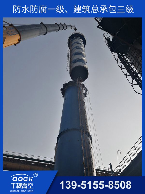 “江蘇千秋高空工程有限公司(原公司江蘇省千秋高空建修防腐有限公司) ”是從事(國內(nèi).國外)240米以下各種(磚、水泥、砼、鋼結(jié)構(gòu))煙囪的新建滑模、防腐、維修、拆除、加固、脫硫、美化、加高、傾斜校正、更換內(nèi)襯、安裝平臺(tái)、安裝避雷針、筒型儲(chǔ)存庫清庫等工程;并承接鋼結(jié)構(gòu)、水塔、冷卻塔、涼水塔、造粒塔、鍋爐鋼架、鋼梁屋架、管道、行車、儲(chǔ)罐、變電構(gòu)架、廠房網(wǎng)架、龍門吊等新建、防腐、維修、美化等高空作業(yè)系列工程。施工全部采用“無腳手架、不停產(chǎn)施工、高空懸掛作業(yè)”等技術(shù)。經(jīng)過二十多年的艱苦創(chuàng)業(yè),現(xiàn)已發(fā)展成為一支領(lǐng)導(dǎo)班子齊全、技術(shù)力量雄厚、施工隊(duì)伍龐大、企業(yè)資源豐厚的現(xiàn)代高空環(huán)保專業(yè)隊(duì)伍,員工全部持有《中華人民共和國特種行業(yè)技術(shù)操作證》上崗。