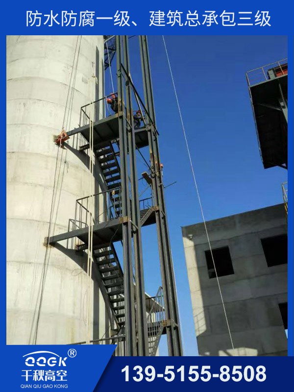 “江蘇千秋高空工程有限公司(原公司江蘇省千秋高空建修防腐有限公司) ”是從事(國(guó)內(nèi).國(guó)外)240米以下各種(磚、水泥、砼、鋼結(jié)構(gòu))煙囪的新建滑模、防腐、維修、拆除、加固、脫硫、美化、加高、傾斜校正、更換內(nèi)襯、安裝平臺(tái)、安裝避雷針、筒型儲(chǔ)存庫(kù)清庫(kù)等工程;并承接鋼結(jié)構(gòu)、水塔、冷卻塔、涼水塔、造粒塔、鍋爐鋼架、鋼梁屋架、管道、行車(chē)、儲(chǔ)罐、變電構(gòu)架、廠(chǎng)房網(wǎng)架、龍門(mén)吊等新建、防腐、維修、美化等高空作業(yè)系列工程。施工全部采用“無(wú)腳手架、不停產(chǎn)施工、高空懸掛作業(yè)”等技術(shù)。經(jīng)過(guò)二十多年的艱苦創(chuàng)業(yè),現(xiàn)已發(fā)展成為一支領(lǐng)導(dǎo)班子齊全、技術(shù)力量雄厚、施工隊(duì)伍龐大、企業(yè)資源豐厚的現(xiàn)代高空環(huán)保專(zhuān)業(yè)隊(duì)伍,員工全部持有《中華人民共和國(guó)特種行業(yè)技術(shù)操作證》上崗。