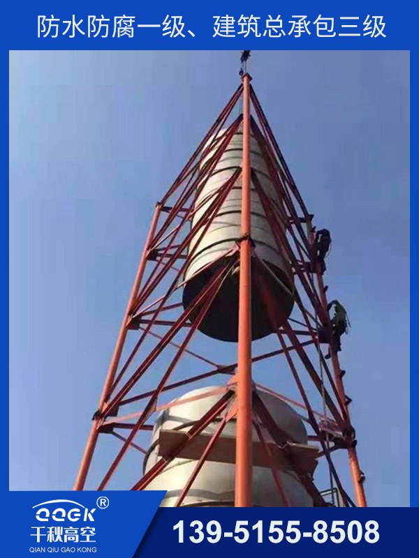 “江蘇千秋高空工程有限公司(原公司江蘇省千秋高空建修防腐有限公司) ”是從事(國內(nèi).國外)240米以下各種(磚、水泥、砼、鋼結(jié)構(gòu))煙囪的新建滑模、防腐、維修、拆除、加固、脫硫、美化、加高、傾斜校正、更換內(nèi)襯、安裝平臺、安裝避雷針、筒型儲存庫清庫等工程;并承接鋼結(jié)構(gòu)、水塔、冷卻塔、涼水塔、造粒塔、鍋爐鋼架、鋼梁屋架、管道、行車、儲罐、變電構(gòu)架、廠房網(wǎng)架、龍門吊等新建、防腐、維修、美化等高空作業(yè)系列工程。施工全部采用“無腳手架、不停產(chǎn)施工、高空懸掛作業(yè)”等技術(shù)。經(jīng)過二十多年的艱苦創(chuàng)業(yè),現(xiàn)已發(fā)展成為一支領(lǐng)導(dǎo)班子齊全、技術(shù)力量雄厚、施工隊伍龐大、企業(yè)資源豐厚的現(xiàn)代高空環(huán)保專業(yè)隊伍,員工全部持有《中華人民共和國特種行業(yè)技術(shù)操作證》上崗。
