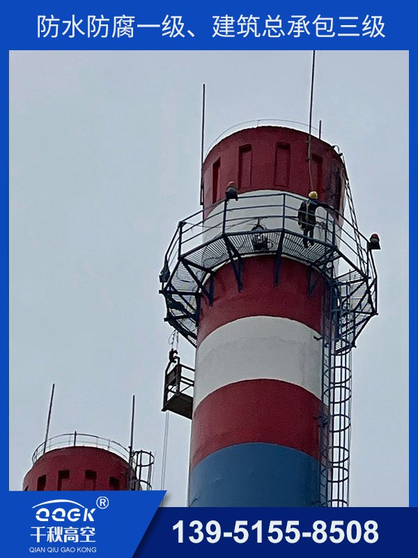 “江蘇千秋高空工程有限公司(原公司江蘇省千秋高空建修防腐有限公司) ”是從事(國內(nèi).國外)240米以下各種(磚、水泥、砼、鋼結(jié)構(gòu))煙囪的新建滑模、防腐、維修、拆除、加固、脫硫、美化、加高、傾斜校正、更換內(nèi)襯、安裝平臺、安裝避雷針、筒型儲存庫清庫等工程;并承接鋼結(jié)構(gòu)、水塔、冷卻塔、涼水塔、造粒塔、鍋爐鋼架、鋼梁屋架、管道、行車、儲罐、變電構(gòu)架、廠房網(wǎng)架、龍門吊等新建、防腐、維修、美化等高空作業(yè)系列工程。施工全部采用“無腳手架、不停產(chǎn)施工、高空懸掛作業(yè)”等技術(shù)。經(jīng)過二十多年的艱苦創(chuàng)業(yè),現(xiàn)已發(fā)展成為一支領(lǐng)導(dǎo)班子齊全、技術(shù)力量雄厚、施工隊伍龐大、企業(yè)資源豐厚的現(xiàn)代高空環(huán)保專業(yè)隊伍,員工全部持有《中華人民共和國特種行業(yè)技術(shù)操作證》上崗。